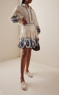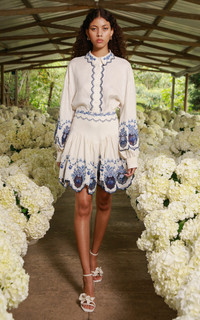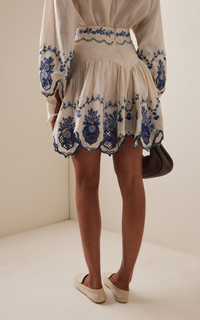 PRODUCT DETAILS - Slim fit, mid rise, gathering, scalloped hem - Concealed zip fastening along back - Unlined - Composition: 100% Linen - Color: ivory - Dry clean