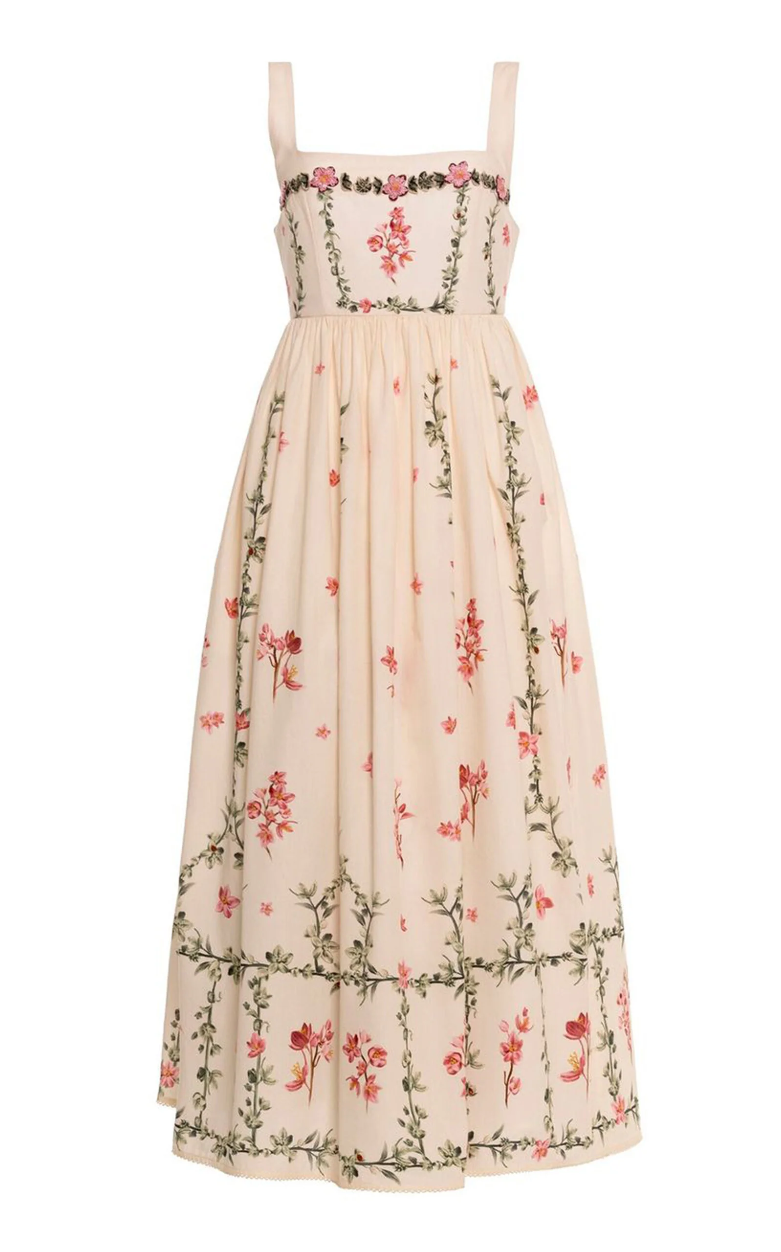 Each season, Agua by Agua Bendita unveils a curated selection of patterns and prints, applied to airy fabrics in mindful hues. The brand’s signature silhouettes are reworked with fresh motifs, inspired by the rich flora of Colombia, often hand-embroidered by gifted local artisans. With a sleek square neckline, a lovely A-line silhouette, filled with chiffon appliques and concealed zip fastening along the back, the Barbara Cauca midi dress in ivory cotton transitions wonderfully from sunny brunches to beachside soirees. PRODUCT DETAILS - Spring '26 - Concealed zip fastening - Composition: 100% Cotton - Dry clean - Imported