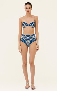 Each season, Agua by Agua Bendita unveils a curated selection of patterns and prints, applied to airy fabrics in mindful hues. For Spring/Summer ’25, the brand’s signature silhouettes are reworked with fresh motifs, inspired by the rich flora of Colombia, often hand-embroidered by gifted local artisans. The best-selling ´magdalena ribbons´ bikini top features delicately placed embellishments details and an underwire support for a seamless fit. Wear it with the ´magenta ribbons´ bikini bottom for a fabulous ensemble. PRODUCT DETAILS - Fall '25 - Composition: 81% polyester 19% elastane - Dry clean - Imported