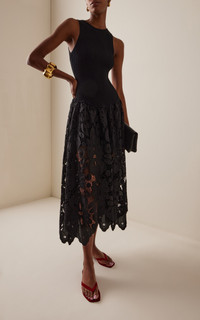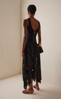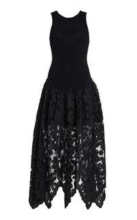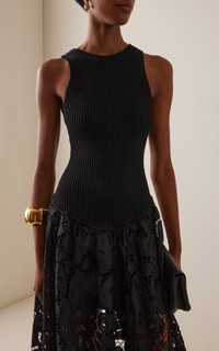 Atlas Asymmetric Ribbed-knit And Guipure Lace Midi Dress