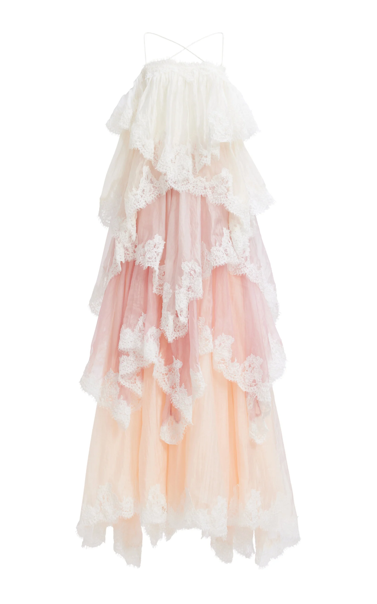 Gown PRODUCT DETAILS - Spring '26 - Slim fit, sleeveless, adjustable straps, square neck, lace-trimmed tiers - Lined - Composition: 55% Nylon, 45% Polyester - Zipper and hook and eye fastening - *Dry Clean Only - Made in China