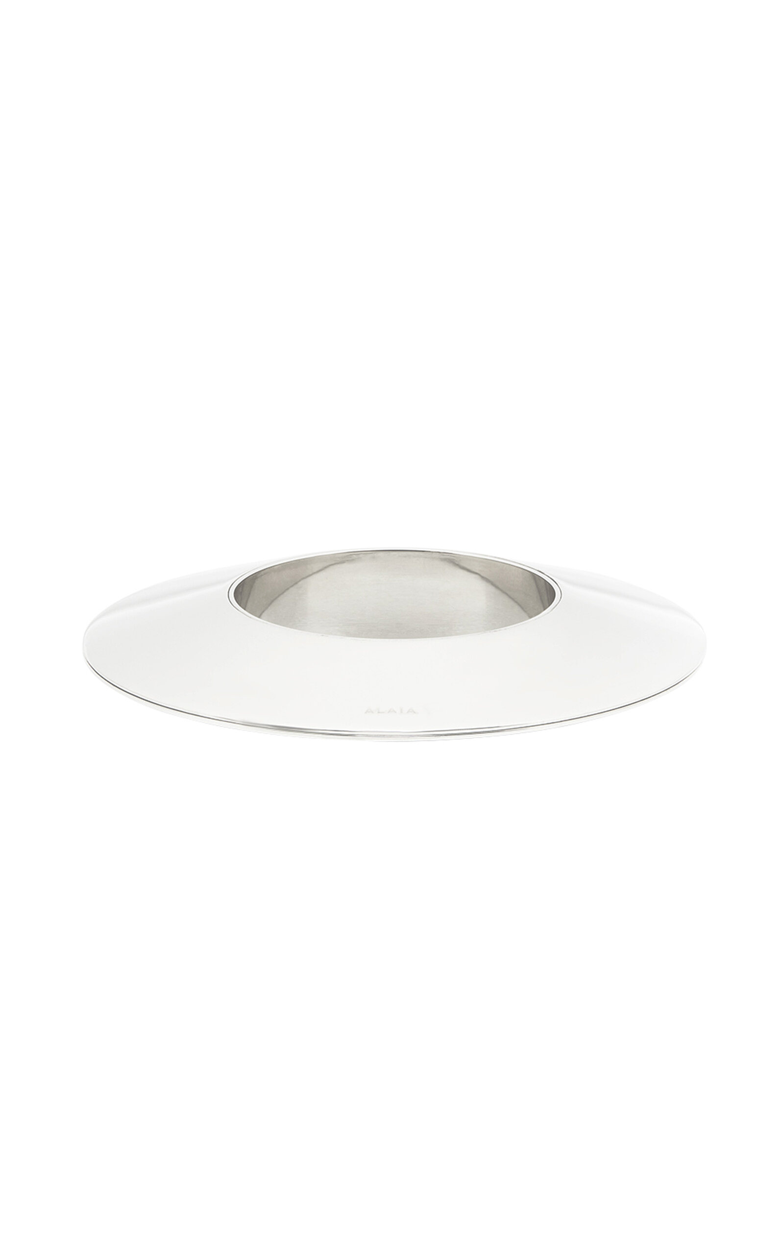 Founded by Azzedine Alaia, today the maison, under the direction of Pieter Mulier, continues the revered couturier's uncompromising vision which champions masterful cuts that accentuate the female form. The house is perhaps best known for its statement bags, edgy footwear, and laser-cut accessories. 'Blade' is a wide sculptural cuff made from lightweight gold-tone metal. PRODUCT DETAILS - Slip on - Composition: aluminium - Made in Italy