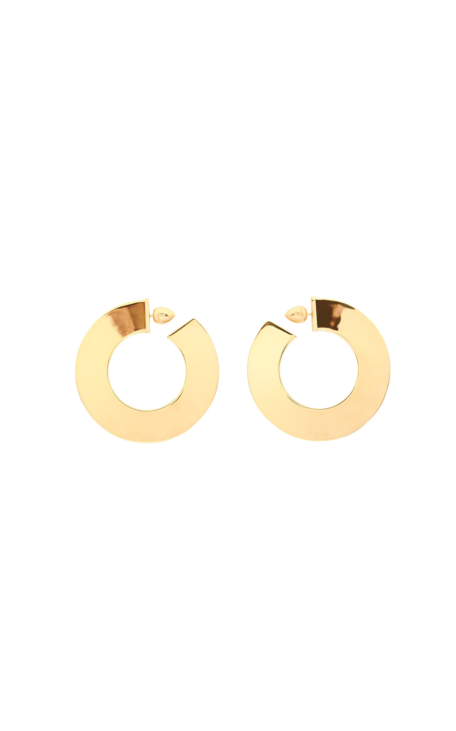 Founded by Azzedine Alaia, today the maison, under the direction of Pieter Mulier, continues the revered couturier's uncompromising vision which champions masterful cuts that accentuate the female form. The house is perhaps best known for its statement bags, edgy footwear, and laser-cut accessories. The 'Blade' earrings feature sculptural hoops made from gold-tone metal. PRODUCT DETAILS - Post fastening for pierced ears - Composition: aluminium, brass - Made in Italy