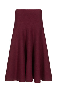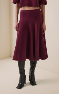 Founded by Azzedine Alaia, today the maison, under the direction of Pieter Mulier, continues the revered couturier's uncompromising vision which champions masterful cuts that accentuate the female form. This coordinating skirt is made from a buttery cashmere-blend knit that hangs beautifully through the frame. It sits just below the natural waist and falls to a classic mid-length. Wear with the matching top. PRODUCT DETAILS - Fall/Winter ‘25 - Slip on - Composition: 94% cashmere, 3% wool, 2% polyamide, 1% elastane - Dry clean - Designer Color: Bordeaux - Made in Italy SIZE & FIT - Our model is wearing a size FR 34 - Model is 5'10" with a 31" bust, 23.5" waist, and 33.5" hip