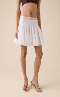 Founded by Azzedine Alaia, today the maison, under the direction of Pieter Mulier, continues the revered couturier's uncompromising vision which champions masterful cuts that accentuate the female form. This classic skater mini has just the right amount of flounce and flare. Crafted from weightless cotton knit. PRODUCT DETAILS - Spring/Summer '25 - Slip on - Composition: 100% Cotton - Designer color: Blanc - Dry clean only - Made in France SIZE & FIT - Our model is wearing a size FR 34 - Model is 5'11" with a 31.5" bust, 23" waist, and 34.5" hip - Designed for a slim fit