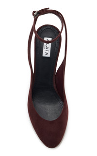 Founded by Azzedine Alaia, today the maison, under the direction of Pieter Mulier, continues the revered couturier's uncompromising vision which champions masterful cuts that accentuate the female form. The house is perhaps best known for its statement bags, edgy footwear, and laser-cut accessories. Made from soft suede, these slingback pumps feature a feminine low vamp, cross ankle straps, and round-pointy toes. PRODUCT DETAILS - Heel height measures 90mm/ 3.5" - Slip on - Composition: goatskin suede - Made in Italy