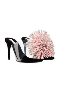 Founded by Azzedine Alaia, today the maison, under the direction of Pieter Mulier, continues the revered couturier's uncompromising vision which champions masterful cuts that accentuate the female form. The house is perhaps best known for its statement bags, edgy footwear, and laser-cut accessories. Made from lambskin leather, these mules feature clear PVC toe straps, one covered in a large handcrafted 3D leather flower. PRODUCT DETAILS - Heel height measures 90mm/ 3.5" - Slip on - Composition: nappa lambskin leather, polyurethane - Made in Italy