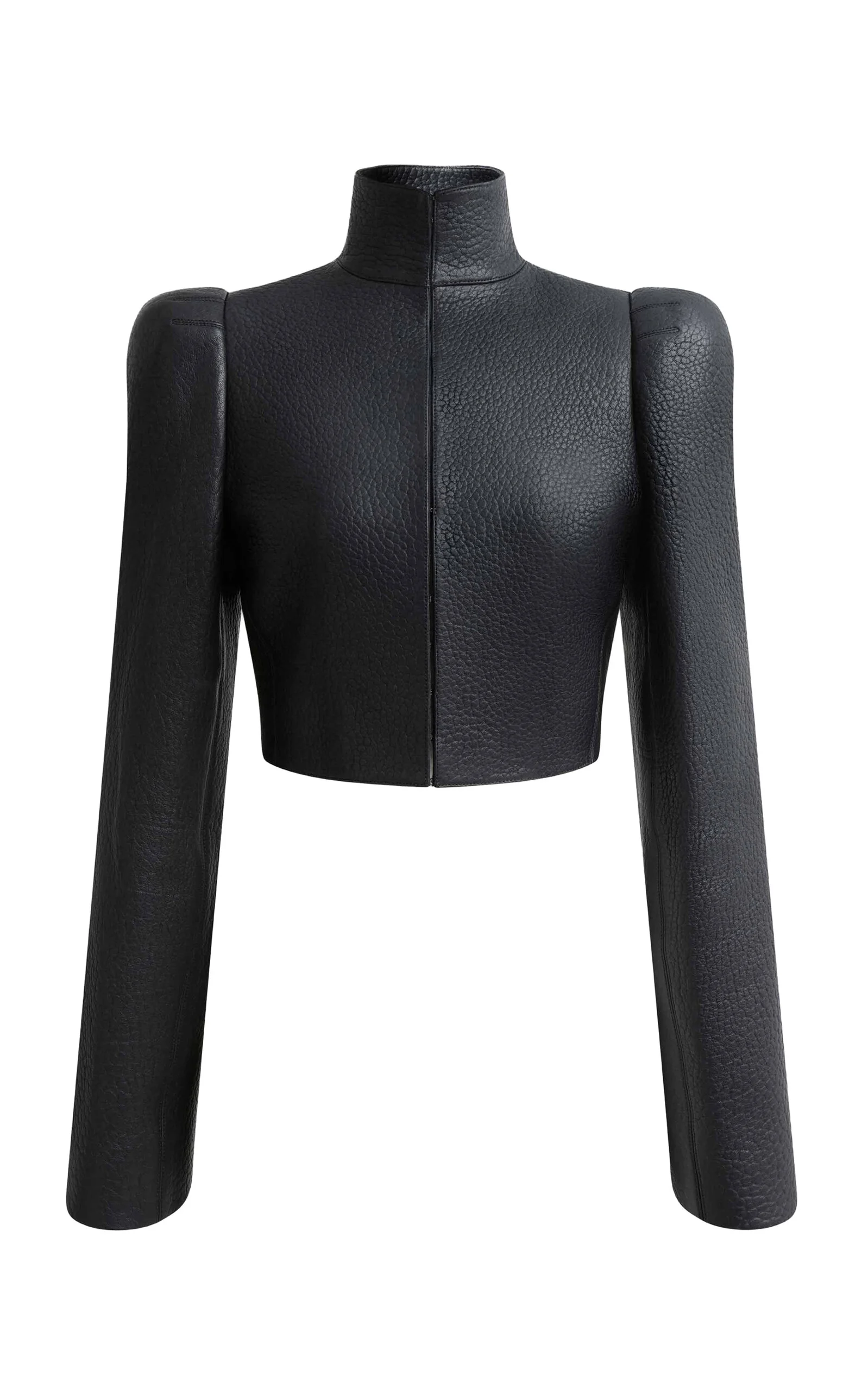 "The message is about singularity, individuality, the eternal strength and resilience of women, empowering them through their clothes. That always inspired Azzedine, and it always inspires me – the strength of beauty.” -Pieter Mulier From the Fall '25 runway. This cropped jacket has a fitted cut made from soft, buttery lambskin with a high neck and gently puffed sleeves. PRODUCT DETAILS - Fall '25 - Zip fastening - Composition: 100% lambskin leather - Specialist clean - Made in France