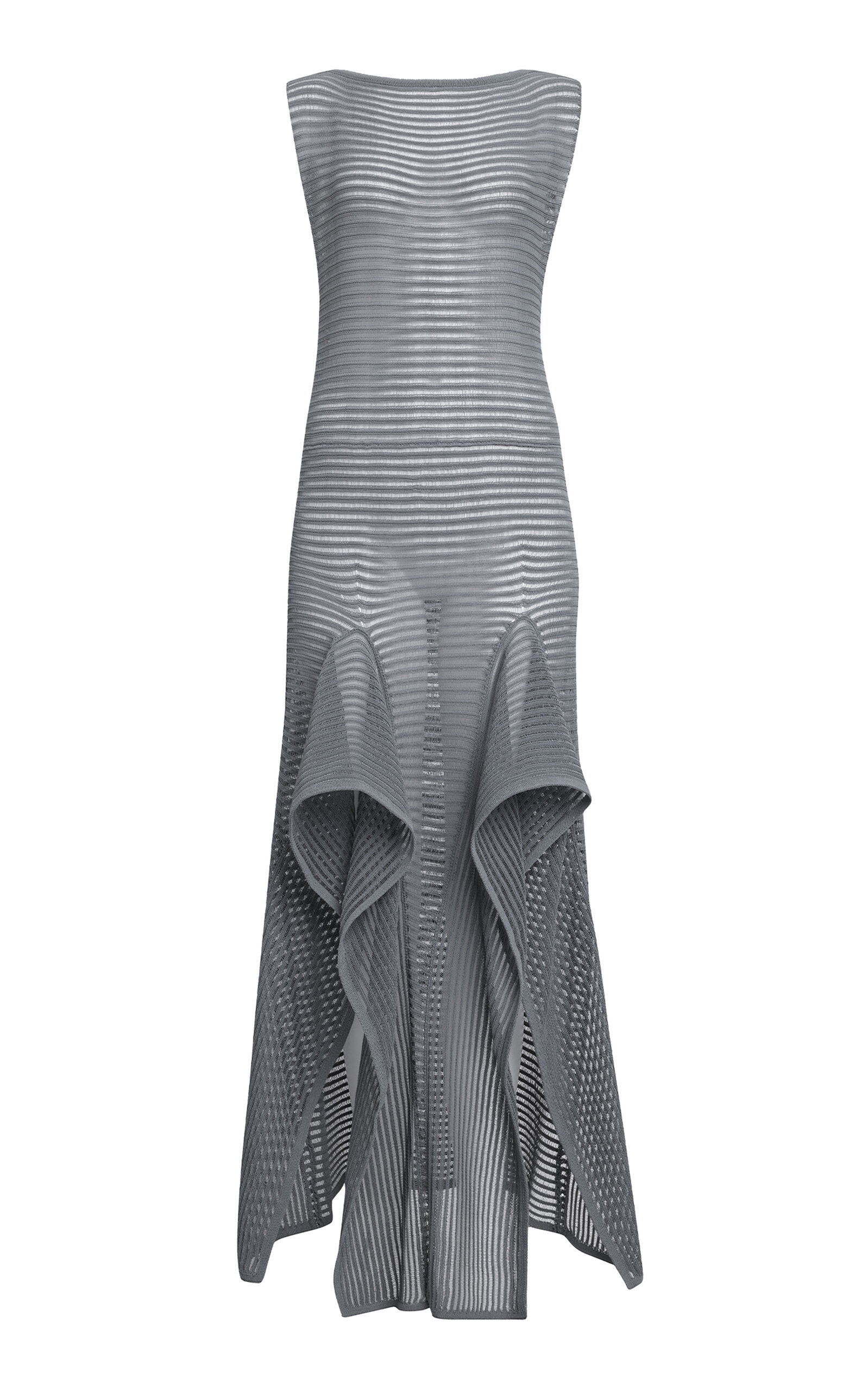 Founded by Azzedine Alaia, today the maison, under the direction of Pieter Mulier, continues the revered couturier's uncompromising vision which champions masterful cuts that accentuate the female form. This midi style is made from a fine ladder-stitched knit with panels that drape over the legs to create a sculptural silhouette, highlighting the house's masterful use of knitwear. PRODUCT DETAILS - Pre-Fall '25 - Slip on - Composition: 65% cotton, 35% polyamide; Skirt Flounce: 63% cotton, 36% polyamide, 1% elastane; Lining: 96% viscose, 4% elastane - Designer color: Lichen - Dry clean - Made in Italy SIZE & FIT - Our model is wearing a size FR 34 - Model is 5'10" with a 30" bust, 24" waist, and 34" hip - Designed for a slim fit