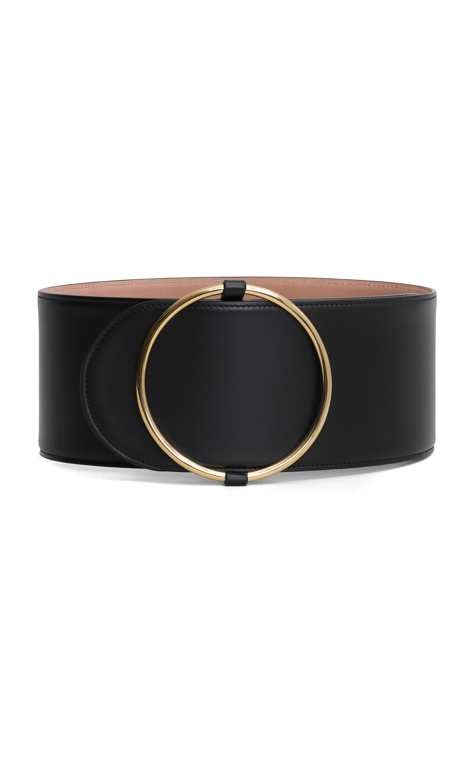 Founded by Azzedine Alaia, today the maison, under the direction of Pieter Mulier, continues the revered couturier's uncompromising vision which champions masterful cuts that accentuate the female form. The house is perhaps best known for its statement bags, edgy footwear, and laser-cut accessories. An iconic brand signature, this leather belt has an oversized silhouette that fastens with a large gold ring. Use it to create or enhance an hourglass figure. PRODUCT DETAILS - Buckle fastening - Composition: calfskin leather - Made in Italy