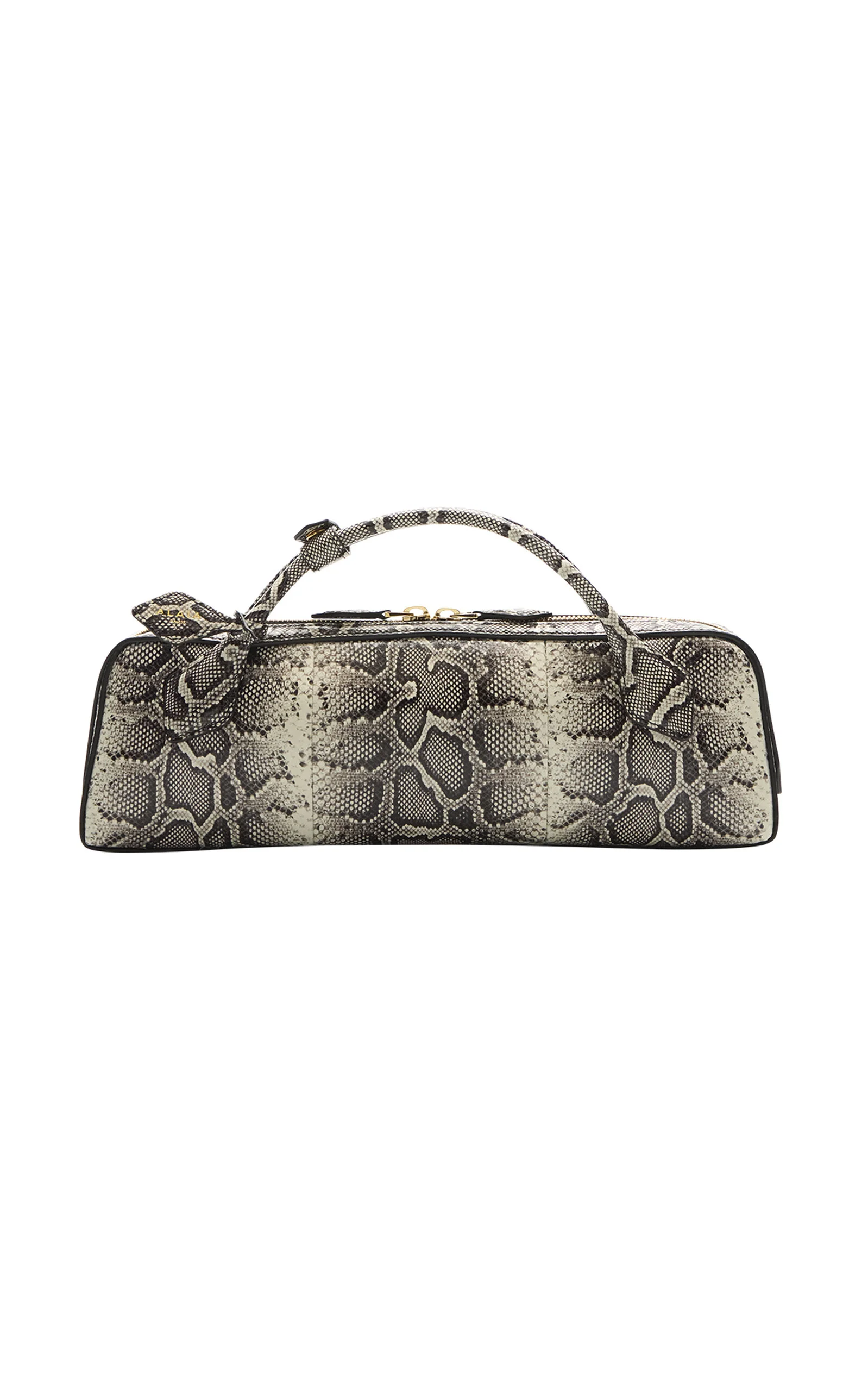 Founded by Azzedine Alaia, today the maison, under the direction of Pieter Mulier, continues the revered couturier's uncompromising vision which champions masterful cuts that accentuate the female form. The house is perhaps best known for its statement bags, edgy footwear, and laser-cut accessories. Made from classic snakeskin-effect leather, this ‘Le Teckel’ clutch is timelessly crafted to a geometric, extended silhouette with a simple top handle. It fastens easily across the top, making your evening essentials readily accessible. PRODUCT DETAILS - Zip fastening - Composition: 100% leather - Made in Italy