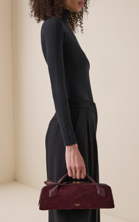 Founded by Azzedine Alaia, today the maison, under the direction of Pieter Mulier, continues the revered couturier's uncompromising vision which champions masterful cuts that accentuate the female form. The house is perhaps best known for its statement bags, edgy footwear, and laser-cut accessories. This clutch version of the iconic ‘Le Teckel’ is made from a combination of leathers with suede and patent finishes. Its elongated profile is suspended from a rolled top handle, and opens easily with a double-zip fastening. PRODUCT DETAILS - Zip fastening - Composition: 100% goatskin - Made in Italy