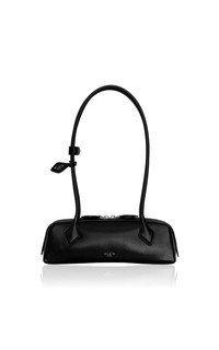 Founded by Azzedine Alaia, today the maison, under the direction of Pieter Mulier, continues the revered couturier's uncompromising vision which champions masterful cuts that accentuate the female form. The house is perhaps best known for its statement bags, edgy footwear, and laser-cut accessories. 'Le Teckel' (or "Dachshund" in French) has an elongated body made from structured leather with luggage-inspired top handles and a moniker-stamped hangtag. PRODUCT DETAILS - Zip fastening along top - Composition: goatskin leather - Made in Italy SIZE & FIT - This item measures approximately 10.6 x 3.55 x 3.15"