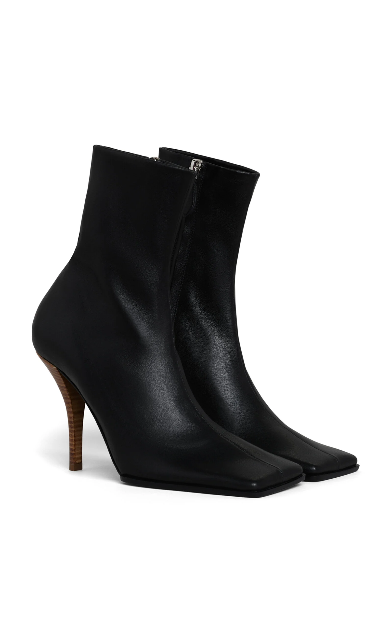 Founded by Azzedine Alaia, today the maison, under the direction of Pieter Mulier, continues the revered couturier's uncompromising vision which champions masterful cuts that accentuate the female form. The house is perhaps best known for its statement bags, edgy footwear, and laser-cut accessories. Crafted from Nappa lambskin leather with ample stretch, these ankle boots are designed to fit like a glove. The sleek silhouette features a wide, square toe contrasted by a tapered heel. PRODUCT DETAILS - Heel measures approximately 90mm / 3.5" - Slip on - Composition: Nappa lambskin leather - Made in Italy