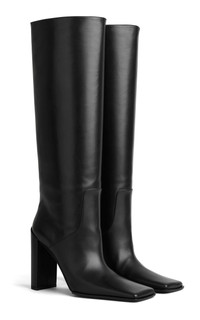 Founded by Azzedine Alaia, today the maison, under the direction of Pieter Mulier, continues the revered couturier's uncompromising vision which champions masterful cuts that accentuate the female form. The house is perhaps best known for its statement bags, edgy footwear, and laser-cut accessories. These knee-length boots are made from polished calfskin with long square toes and and block heels that are slightly protruding at the back to elongate the leg. PRODUCT DETAILS - Heel height measures 90mm/ 3.5" - Zip fastening - Composition: calfskin leather - Made in Italy