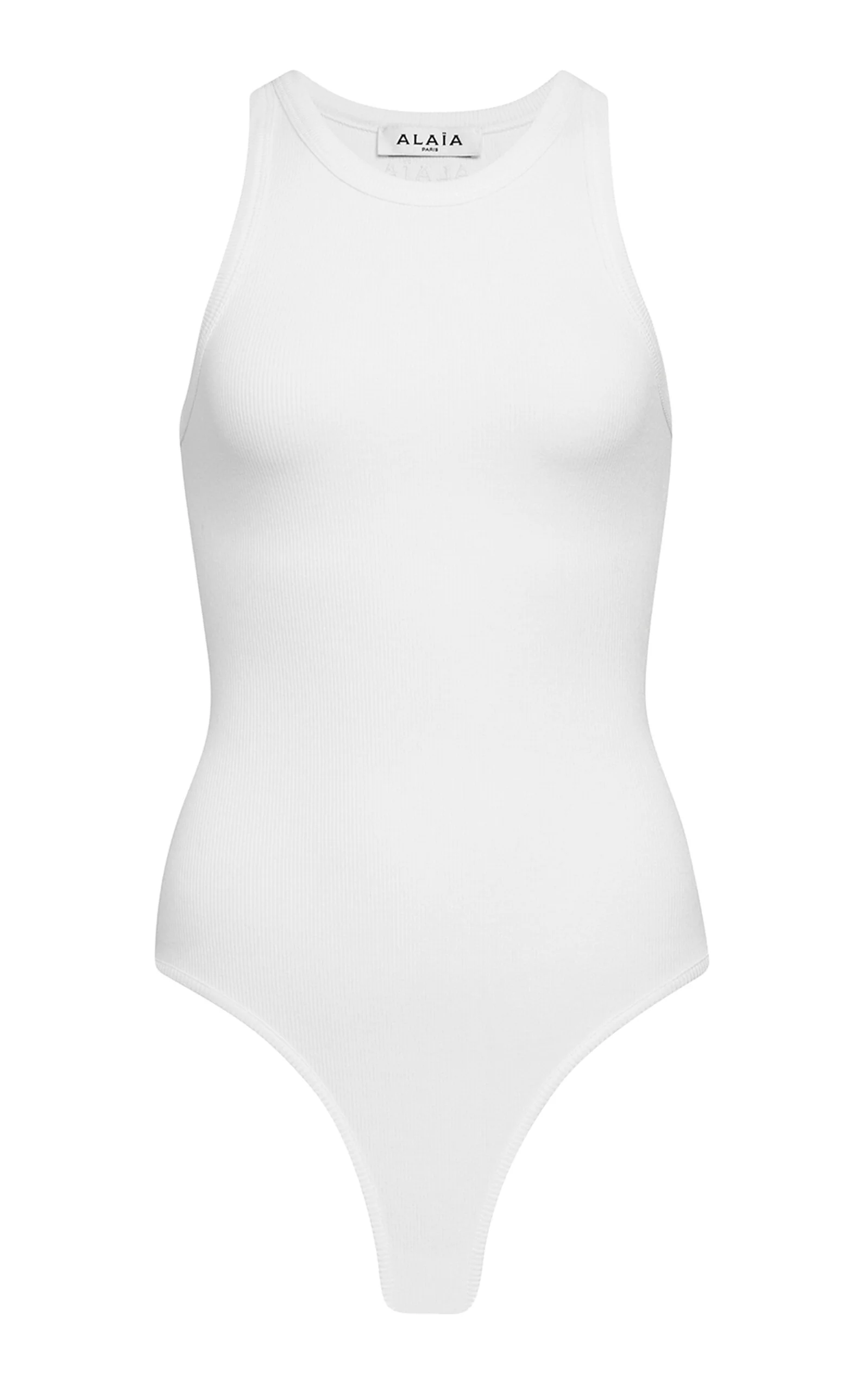 Founded by Azzedine Alaia, today the maison, under the direction of Pieter Mulier, continues the revered couturier's uncompromising vision which champions masterful cuts that accentuate the female form. A classic tank made from finely ribbed cotton-blend stretch-jersey with an attached brief. PRODUCT DETAILS - Pre-Fall '25 - Snap fastening - Composition: 48% cotton, 47% viscose, 5% elastane - Dry clean - Made in Italy SIZE & FIT - Our model is wearing a size FR 34 - Model is 5'10" with a 30" bust, 24" waist, and 34" hip - Designed for a slim fit
