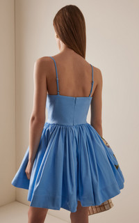Australian Lesleigh Jermanus continues to deliver a sustainable marriage of femininity and island-ready ease that makes her pieces so covetable. The 'Donata' is crafted from a crisp cotton-blend poplin and defined by its full, flared skirt. PRODUCT DETAILS - Pre-Fall '25 - Concealed zip fastening along back - Composition: 47% polyester, 46% cotton, 7% nylon - Designer color: Sky - Dry clean only - Imported SIZE & FIT - Our model is wearing a size AU 6 - Model is 5'10" with a 32" bust, 23.5" waist, and 34.5" hip - Designed for a slim fit