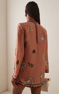 Every collection begins with a story. For Resort 2026, that story unfolds in Marrakech—a city that has long inspired founder and creative director Lesleigh Jermanus. This season, ALEMAIS collaborated with Laurence Leenaert, artist and founder of Marrakech-based design studio LRNCE. This piece takes inspiration from the Red City's sun-faded color palette, vibrant souks, and rich sensory landscape. PRODUCT DETAILS - Resort '26 - Slip on - Composition: 78% linen, 22% silk - Dry clean - Imported