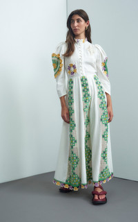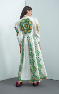 PRODUCT DETAILS - As featured in the Fall Winter '22 lookbook - Slim fit, high neck, puffed sleeves, midi hem, unlined - Button fastening - Composition: 55% linen 45% cotton - Dry Clean Only - Imported SIZE & FIT - True to size - Model wears a size UK 10