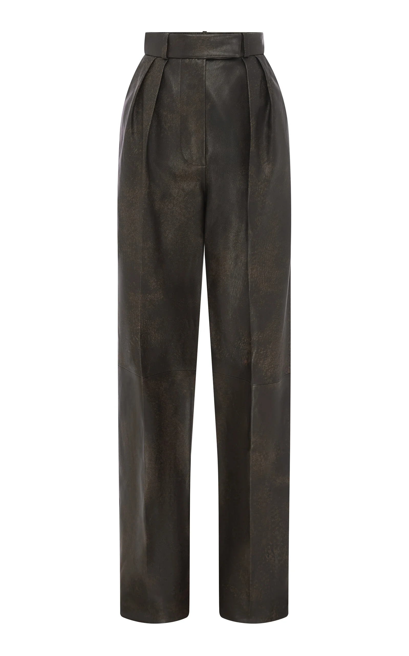 Tailored Leather Wide-Leg Pants brown