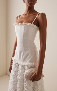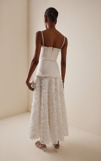 The mother-daughter duo continues building on the well-priced, flirty party pieces they’ve made their signature. The 'Maitland' dress has a corseted drop-waist bodice and a full skirt made from petal appliques. PRODUCT DETAILS - Pre-Fall '25 - Zip fastening - Composition: 96% cotton, 4% elastane; Combo: 100% polyester; Lining: 95% polyester, 5% elastane - Dry clean - Imported SIZE & FIT - Our model is wearing a size Small - Model is 5'10.5" with a 32" bust, 24.5" waist, and 34" hip - Designed for a slim fit