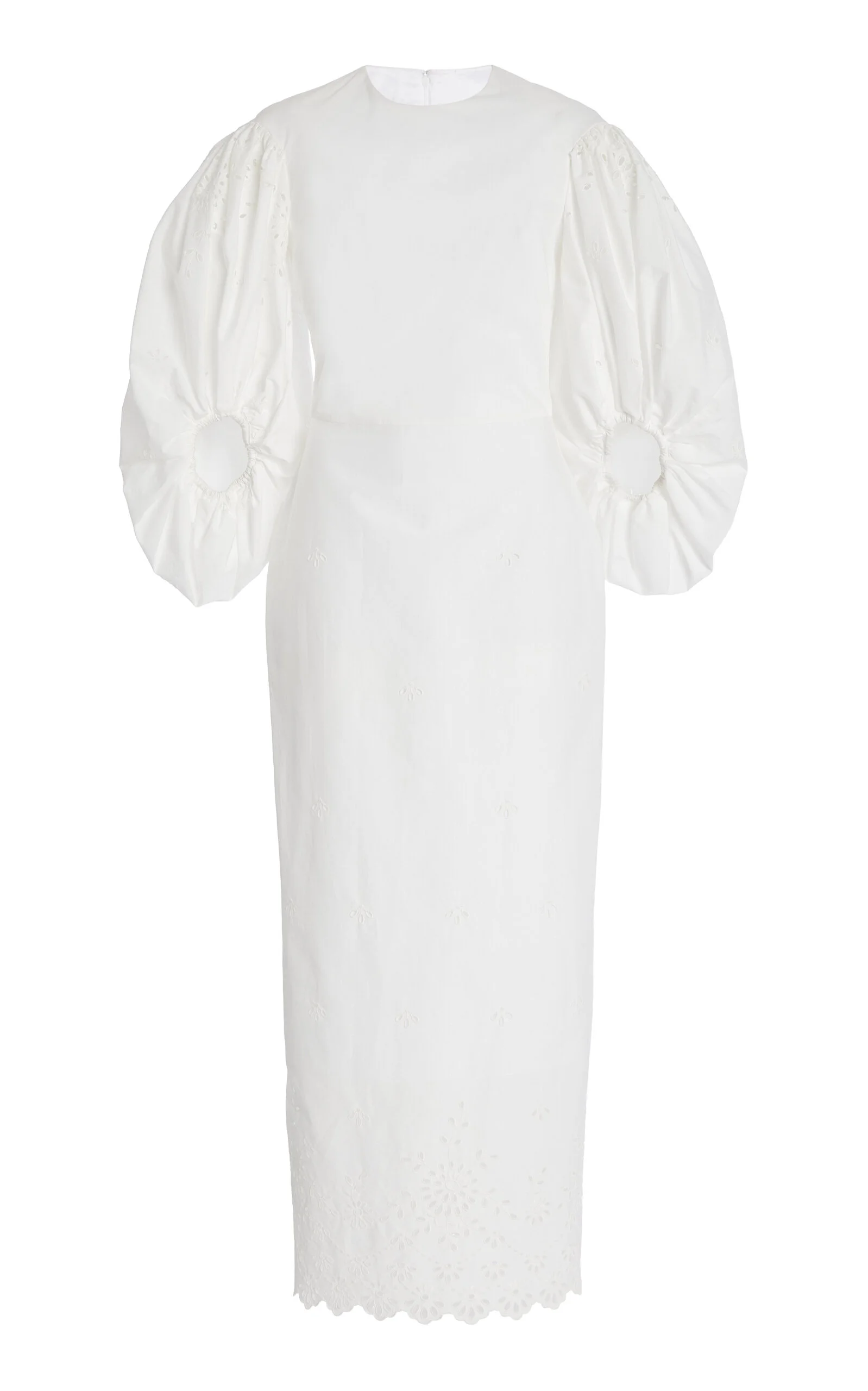 Danielle Puff-Sleeve Cotton-Blend Maxi Dress white