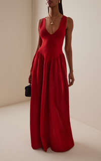 PRODUCT DETAILS - Sleeveless, V-neck, corset-like waist, maxi hem - Concealed zip fastening - Composition: 100% Grs Viscose - Color: red - Dry Clean Only - Fall/Winter '25