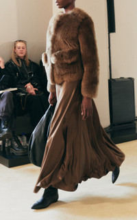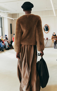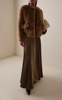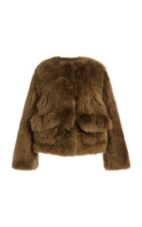 PRODUCT DETAILS - Plush textile, cropped hem, flap pockets - Hook fastening - Composition: 100% Lamb Skin - Color: dark green - Dry Clean Only - Fall/Winter '25
