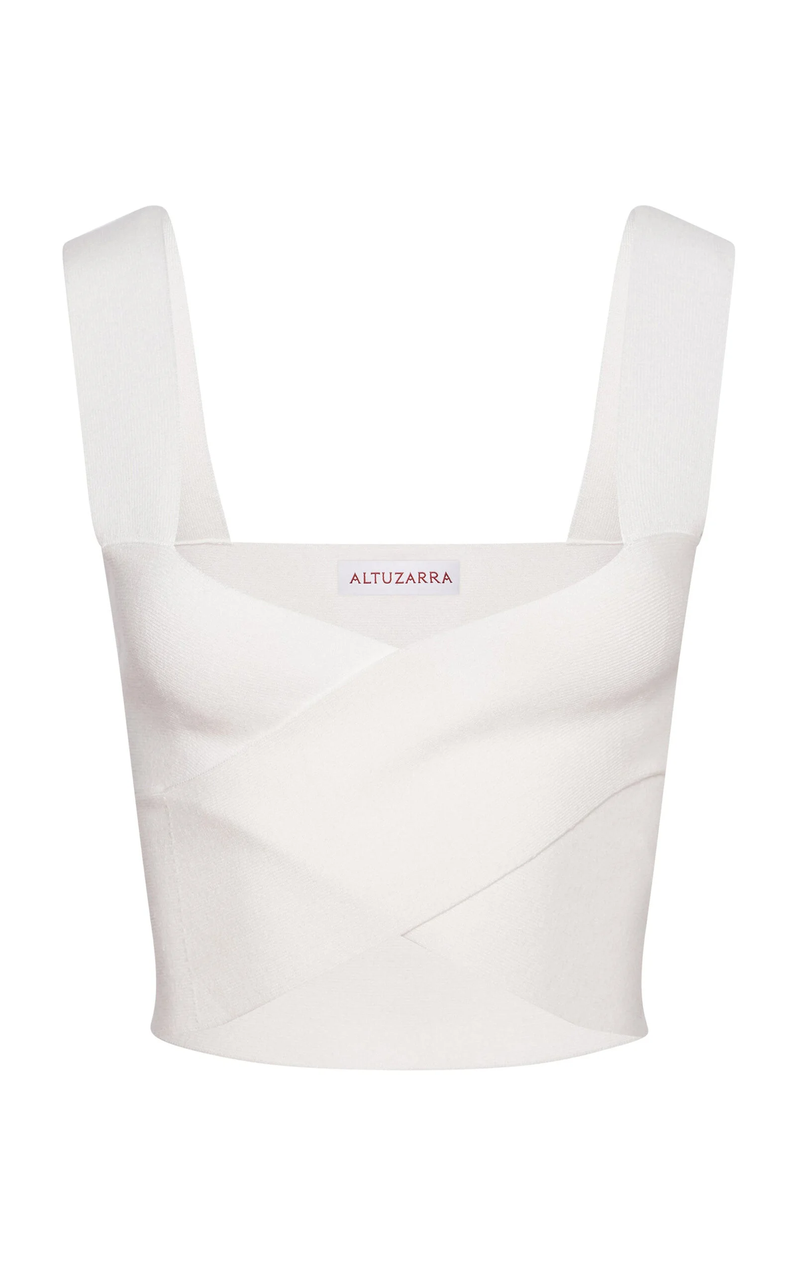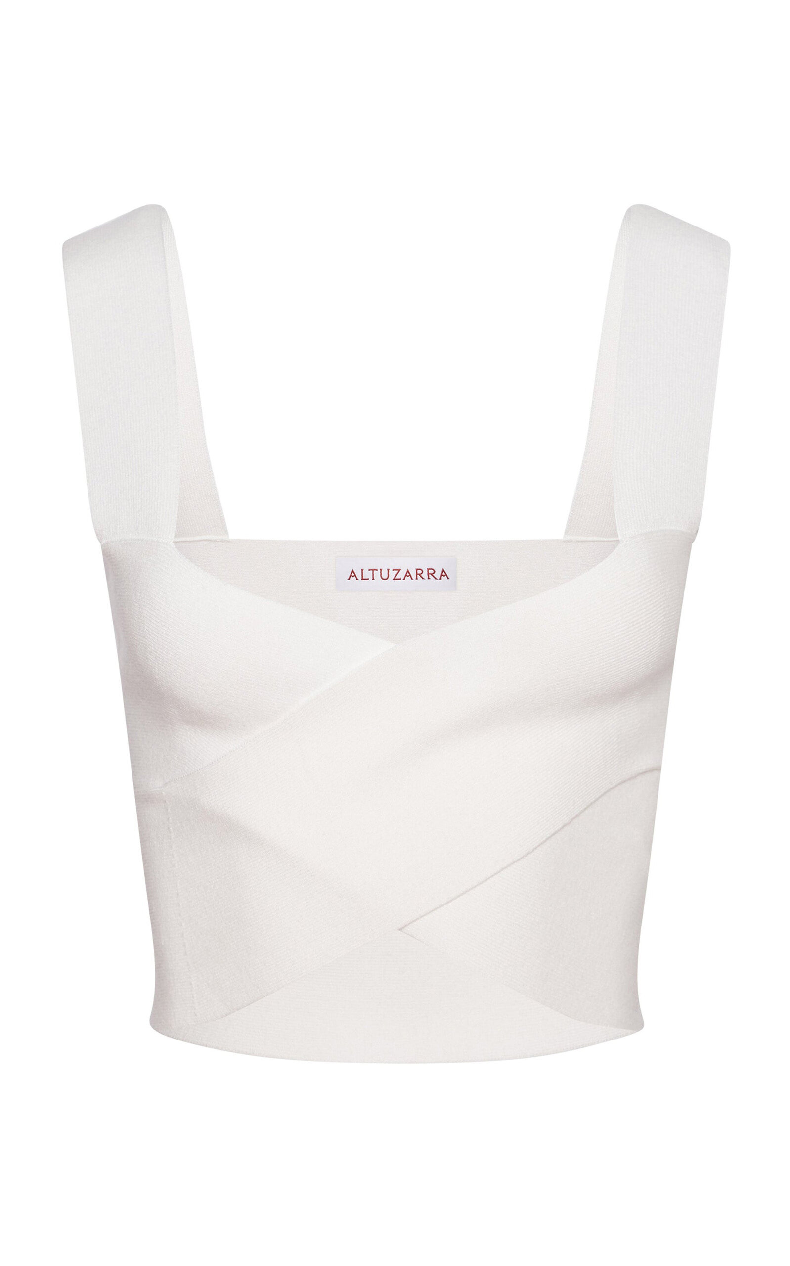 Anchored in artisanal craftsmanship, the Altuzarra brand speaks to the power, fearlessness and sensuality of the modern woman. The ‘Mylas’ top is tailored from soft stretch-knit to a figure-skimming cropped silhouette. The plunging, crossed front is balanced by wide shoulder straps. PRODUCT DETAILS - This item is not eligible for expedited shipping - Slip on - Composition: 72% eco-responsible viscose, 28% polyester - Dry clean - Imported SIZE & FIT - Designed for a slim fit
