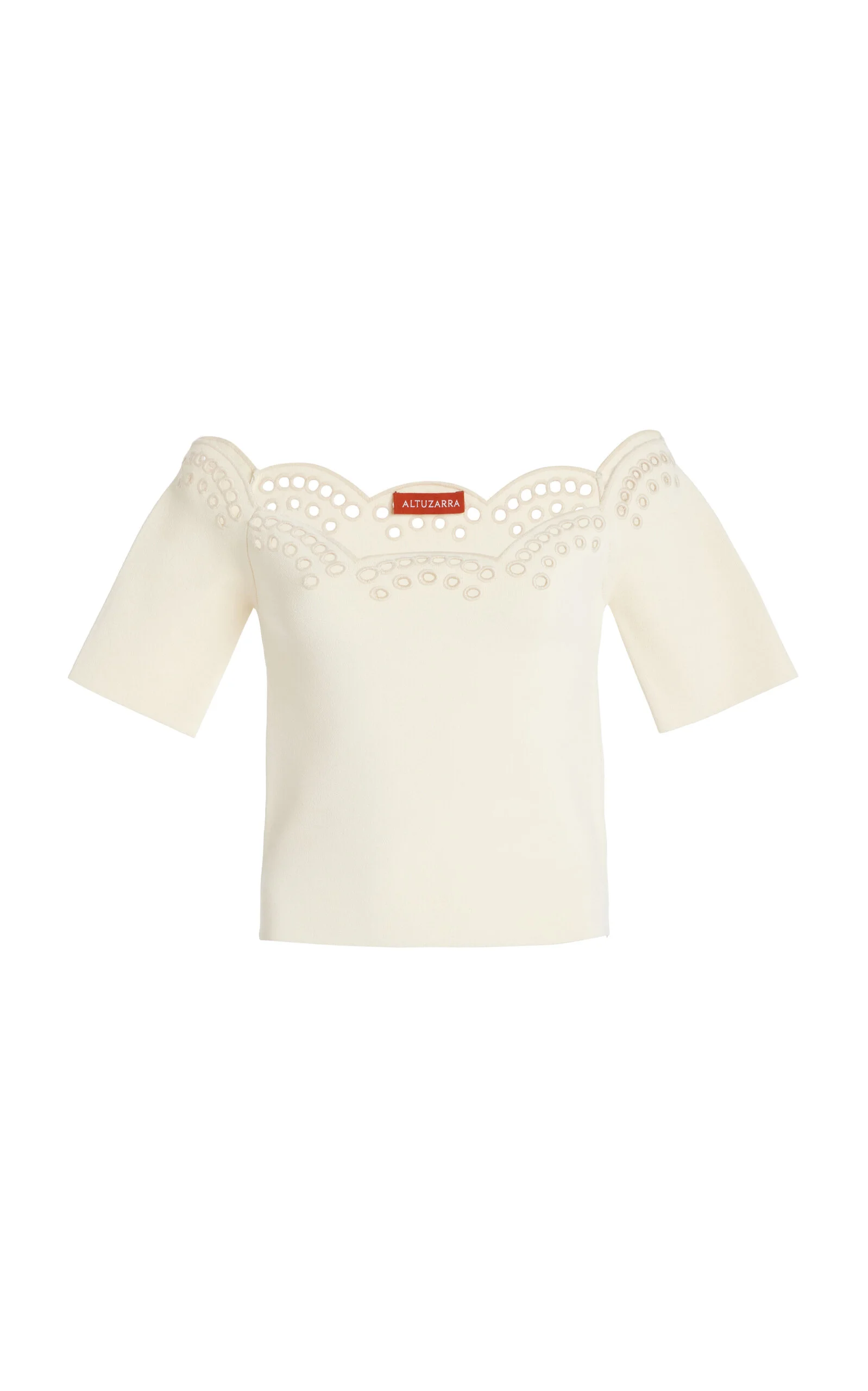 Posy Embroidered Knit Off-The-Shoulder Top ivory