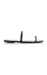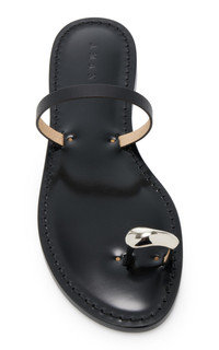 Anita Patrickson channels her love of Africa (she grew up on a farm out in the bush), her reverence for Mother Earth, and her appreciation for conscious craftsmanship into impossibly chic handmade sandals. To ensure minimum excess waste, each pair is made to measure using the finest leather sourced from Florence—which is then painted by hand—as well as hides that are by-products and vegetable-dyed. Handmade from leather, the 'Kibera' sandals have a sleek, minimal body adorned with a silver-plated toe ring. PRODUCT DETAILS - Slip on - Composition: leather - Made in the USA