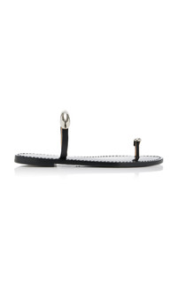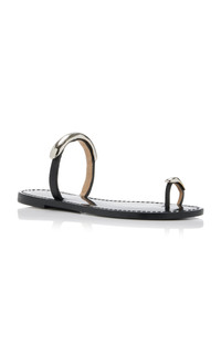 Anita Patrickson channels her love of Africa (she grew up on a farm out in the bush), her reverence for Mother Earth, and her appreciation for conscious craftsmanship into impossibly chic handmade sandals. To ensure minimum excess waste, each pair is made to measure using the finest leather sourced from Florence—which is then painted by hand—as well as hides that are by-products and vegetable-dyed. Handmade from leather, the 'Samburu' sandals have a sleek, minimal body adorned with a silver-plated ankle strap and toe ring. PRODUCT DETAILS - Slip on - Composition: leather - Made in the USA