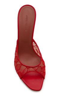 Well-crafted and unambiguously glamorous, Amina Muaddi's accessories are in high demand by international taste-makers. The brand is synonymous with vibrant hues, luxurious embellishments, and metallic shine all while being exquisitely designed to last well after the party. Meticulously crafted in Italy, the 'Alexa' mules have a squared silhouette made from lace with a leather-covered stiletto heel and lightly cushioned soles. PRODUCT DETAILS - Heel height measures approximately 95mm/ 3.75" - Slip on - Composition: lace - Made in Italy