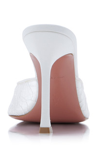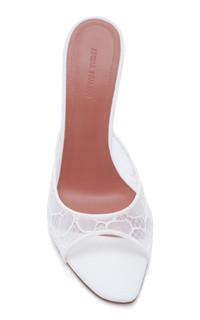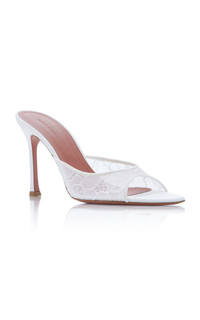 Well-crafted and unambiguously glamorous, Amina Muaddi's accessories are in high demand by international taste-makers. The brand is synonymous with vibrant hues, luxurious embellishments, and metallic shine all while being exquisitely designed to last well after the party. Meticulously crafted in Italy, the 'Alexa' sandals have a squared silhouette made from ivory lace with lightly cushioned soles. PRODUCT DETAILS - Heel height measures approximately 95mm/ 3.75" - Slip on - Composition: Lace - Made in Italy