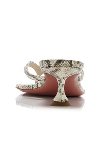 Well-crafted and unambiguously glamorous, Amina Muaddi's accessories are in high demand by international taste-makers. The brand is synonymous with vibrant hues, luxurious embellishments, and metallic shine all while being exquisitely designed to last well after the party. Made from snake-embossed leather, the 'Juliette' thong sandals are set on a signature pyramid heel. The soles are lightly cushioned for comfort. PRODUCT DETAILS - Heel measures approximately 45mm/ 1.75" - Slip on - Composition: snake printed nappa - Made in Italy
