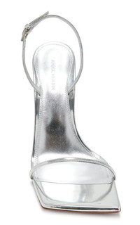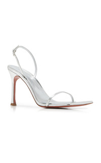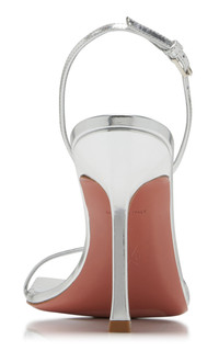 Well-crafted and unambiguously glamorous, Amina Muaddi's accessories are in high demand by international taste-makers. The brand is synonymous with vibrant hues, luxurious embellishments, and metallic shine all while being exquisitely designed to last well after the party. Crafted from silver-metallic leather, the 'Maya' sandals have a square-toe silhouette with two minimal straps — sleek and timeless. PRODUCT DETAILS - Heel measures approximately 95mm/ 3.75" - Buckle fastening - Composition: leather - Made in Italy