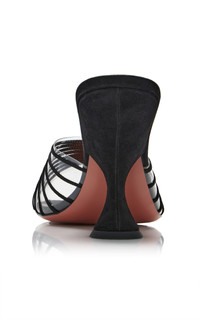 Well-crafted and unambiguously glamorous, Amina Muaddi's accessories are in high demand by international taste-makers. The brand is synonymous with vibrant hues, luxurious embellishments, and metallic shine all while being exquisitely designed to last well after the party. Made from thin straps of suede backed by PVC, the 'Mookie' sandals are defined by their curved heel. The soles are lightly cushioned for comfort. PRODUCT DETAILS - Heel measures approximately 95mm/ 3.75" - Slip on - Composition: suede, PVC - Made in Italy