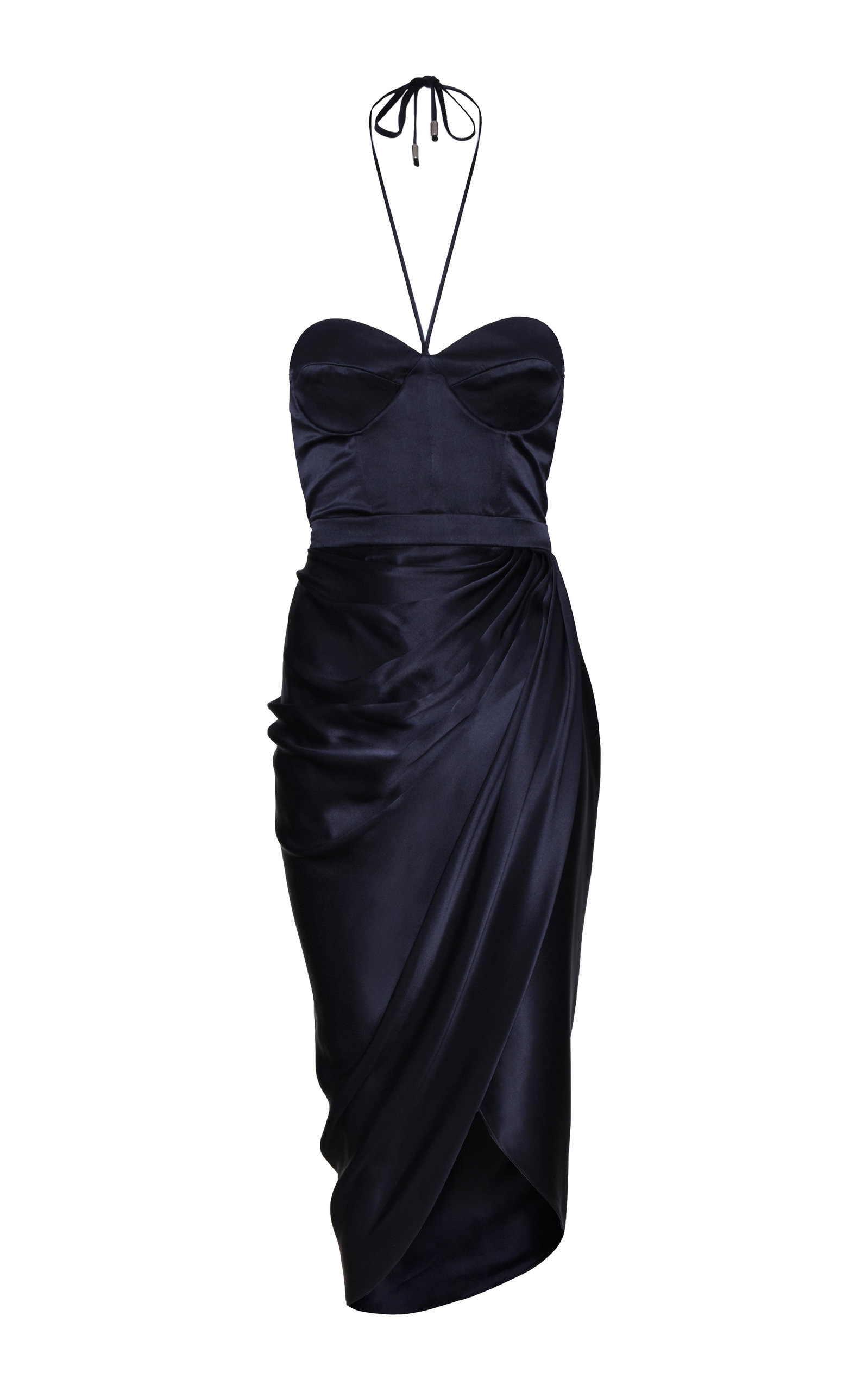 PRODUCT DETAILS - As featured in the Resort '22 lookbook, style it with stacked bangles and metallic sandals - Slim fit, neck ties, sweetheart neckline, contoured cups, spaghetti straps, draped wrap-effect front, lined - Zip fastening along back - Composition: 100% silk charmeuse - Dry clean - Made in Colombia SIZE & FIT - Model wears a US 4 - Fits small to size, our fit specialist recommends taking one size up