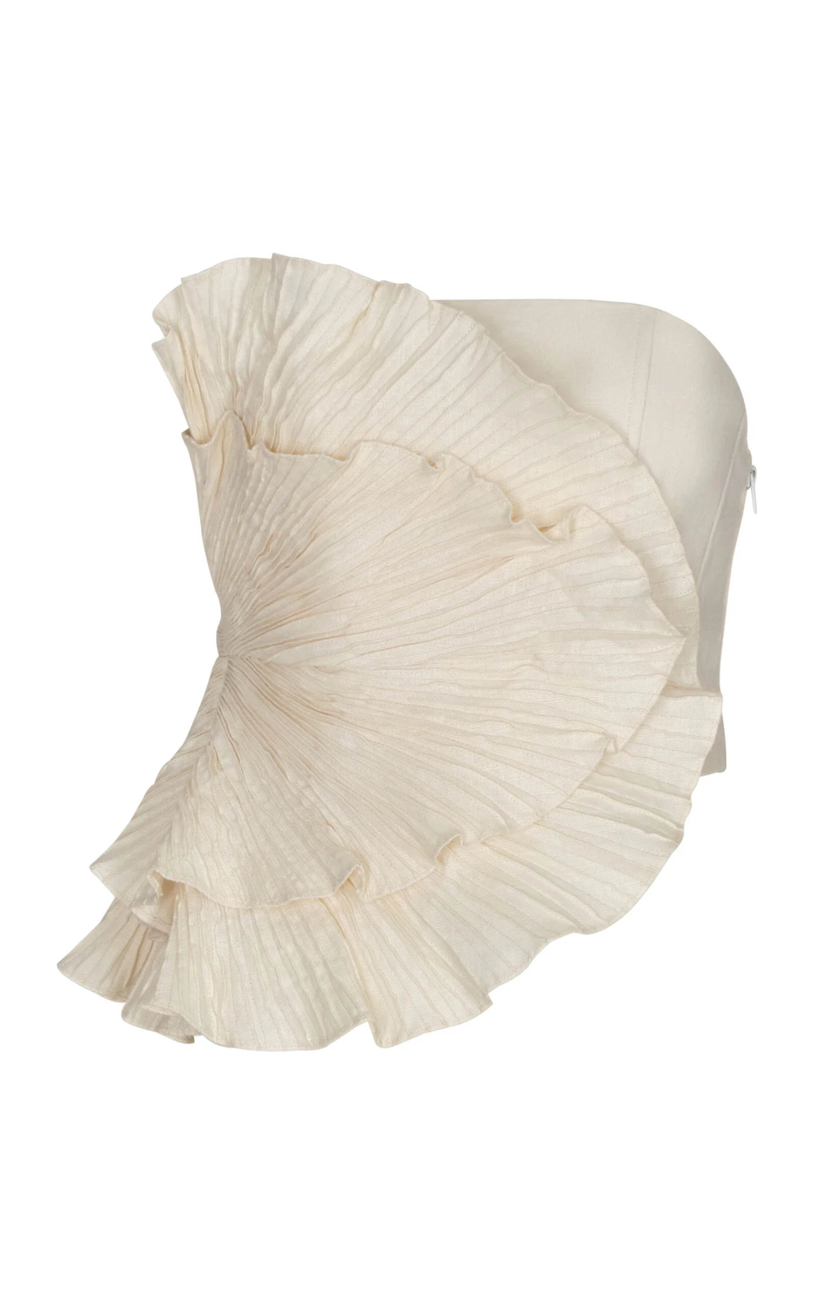 The Colombian designer draws inspiration from the lush, green landscapes of his home country’s tropical paradise. His goal? To mirror the vibrancy of the natural world through carefully designed pieces made from high-quality fabrics. Inspired by the natural movement of waves, ‘Las Olas’ is crafted with a robust linen bodice and pleated panels that spray across the frame. Wear this sculptural piece with tonal wide-leg pants. PRODUCT DETAILS - Resort '26 - Zipper fastening - Composition: 100% Linen - Dry Clean - Imported