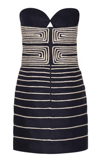 Muy Poetica strapless rope-trimmed cutout linen mini dress Navy