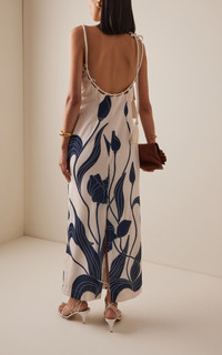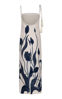 The Colombian designer draws inspiration from the lush, green landscapes of his home country’s tropical paradise. His goal? To mirror the vibrancy of the natural world through carefully designed pieces made from high-quality fabrics. The 'Pasos De Jardin' dress features floral prints, a tassel detailed straps, with a revealing scooped back. PRODUCT DETAILS - Pre-Fall '25 - Concealed zip fastening - Composition: 100% Linen - Dry clean only - Made in Colombia SIZE & FIT - Model is wearing a size 4
