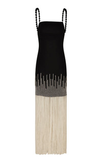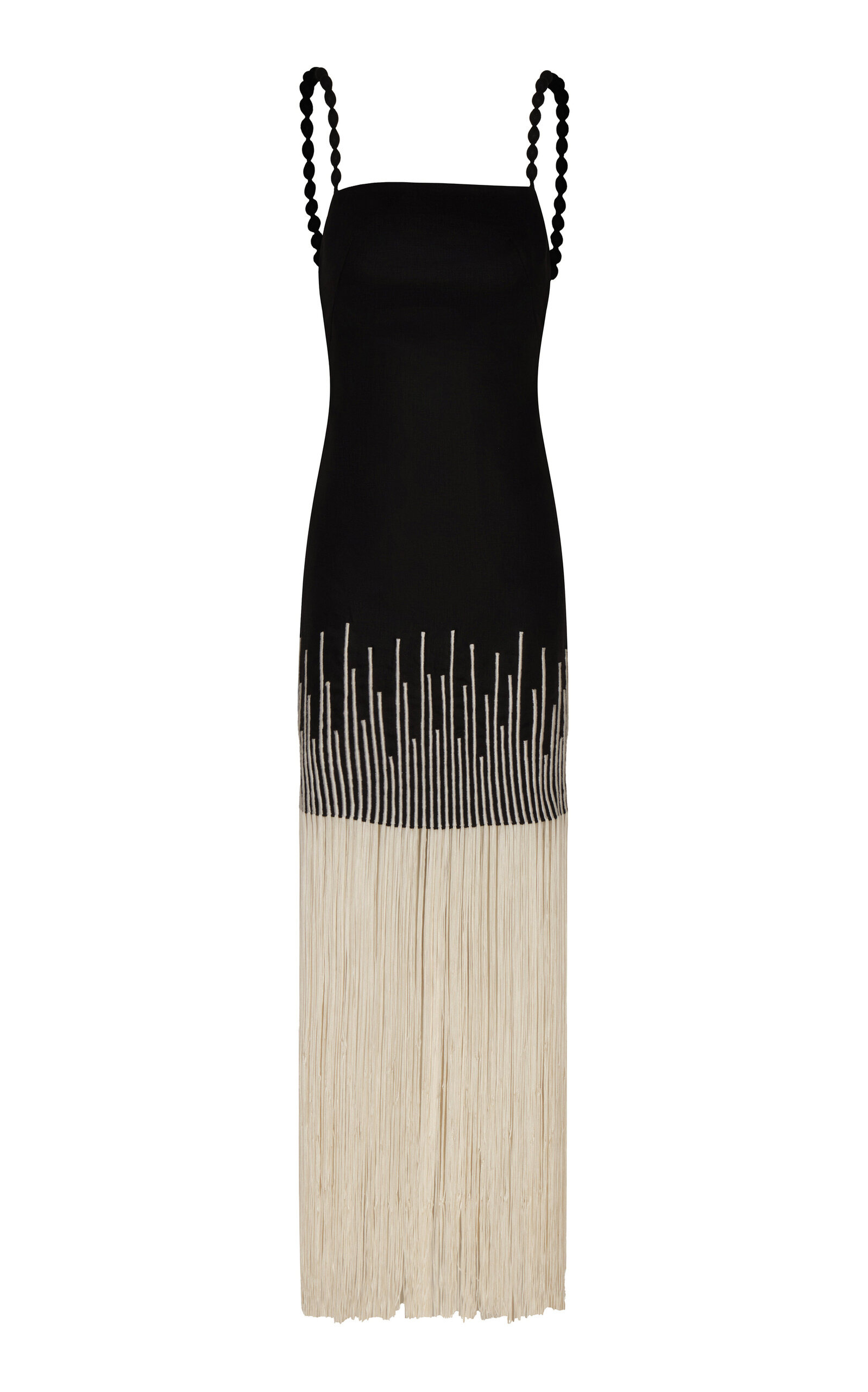 The Colombian designer draws inspiration from the lush, green landscapes of his home country’s tropical paradise. His goal? To mirror the vibrancy of the natural world through carefully designed pieces made from high-quality fabrics. The ‘Silencios’ dress makes a striking entrance with its slim silhouette, square neckline, and sculptural circular straps. The skirt flows into a fringe-trimmed hem that sways with movement, perfect for evening drama. Style with sleek heels and minimal jewelry. PRODUCT DETAILS - Fall-Winter '25 - Zip Closure Through Back - Composition: 100% Linen - Dry Clean Only - Color: black/white - Made in Colombia SIZE & FIT - Our model is wearing a size 2 - Model is 5’10” with a 30” bust, 24” waist, and 34” hip