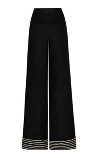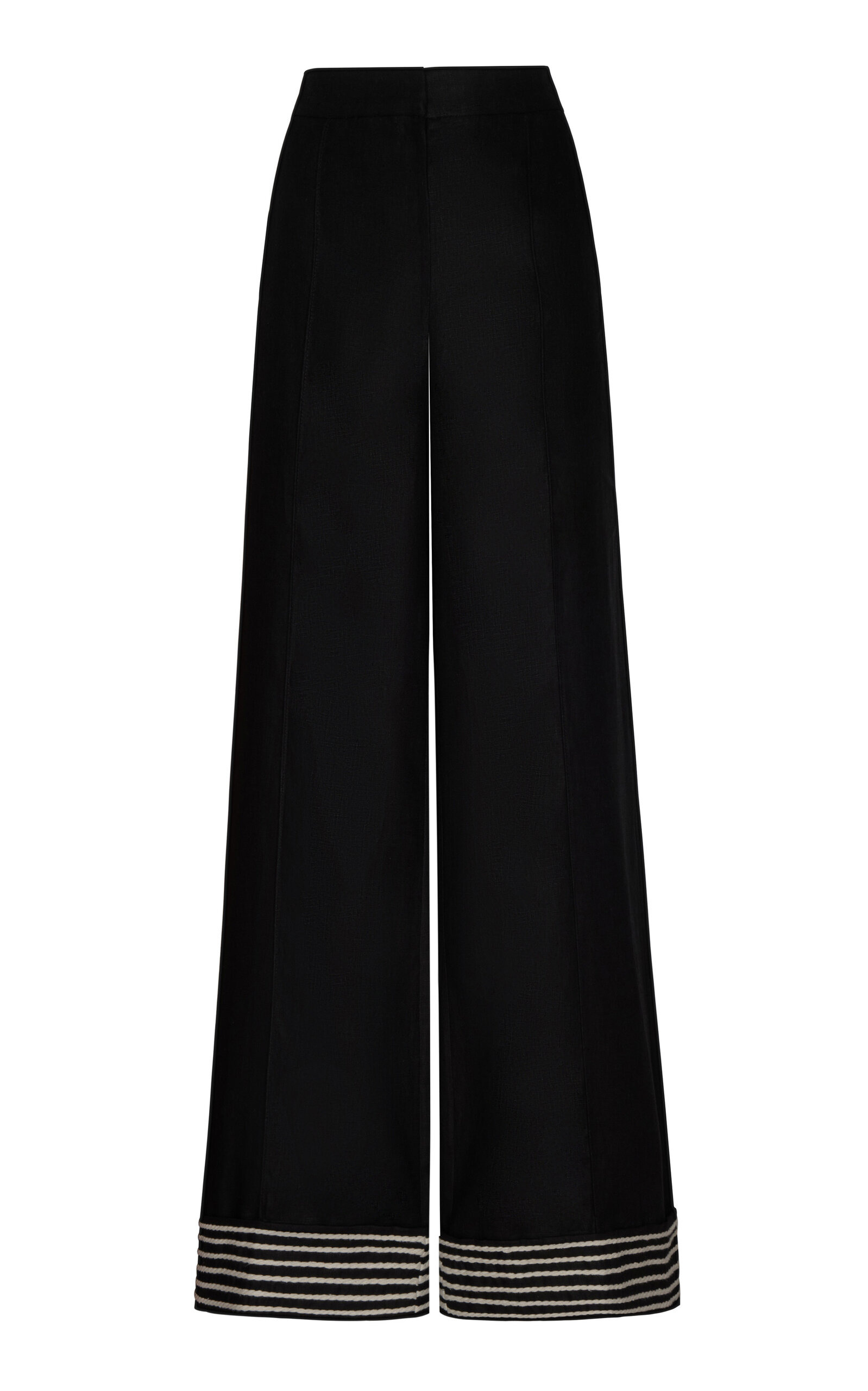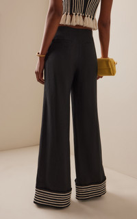 The Colombian designer draws inspiration from the lush, green landscapes of his home country’s tropical paradise. His goal? To mirror the vibrancy of the natural world through carefully designed pieces made from high-quality fabrics. The 'Tu Sutileza' trousers are made from lightweight linen. They have a high-rise waist and fall to a fluid straight-leg silhouette with striped detailing at the hem. Pair yours with sandals and the label's coordinating top. PRODUCT DETAILS - Fall-Winter '25 - Button and Zip Closure - Lined - Composition: 100% Linen - Dry Clean Only - Color: black/white - Made in Colombia SIZE & FIT - Our model is wearing a size 2 - Model is 5’10” with a 31” bust, 23.5” waist, and 33.5” hip