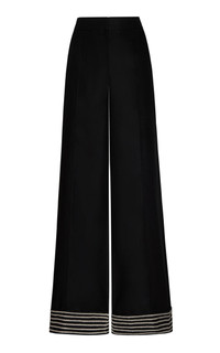 Tu Sutileza embroidered linen wide-leg pants Black
