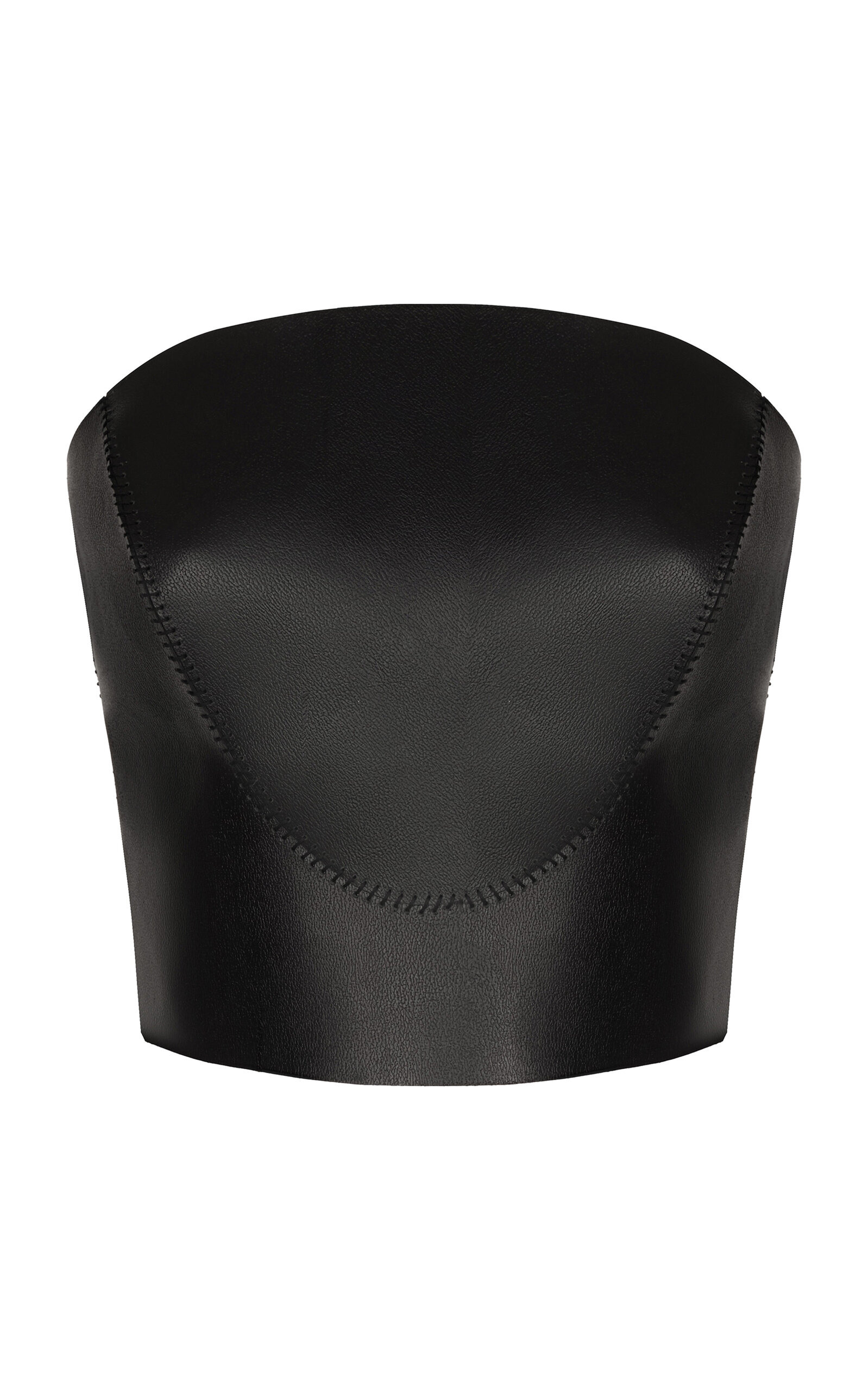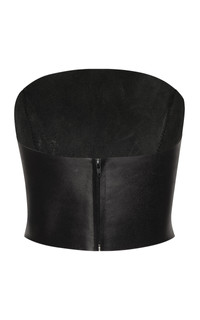 PRODUCT DETAILS - Slim fit, strapless, cropped silhouette - Zip Closure Through Back - Lined - Composition: 100% Leather - Color: black - Dry Clean Only - Fall-Winter '25