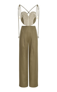 PRODUCT DETAILS - Slim tie straps, cutout sides, loose leg, ankle crop - Concealed zip fastening - Lined - Composition: 100% Linen - Color: green - Dry clean only - Pre-Fall '25