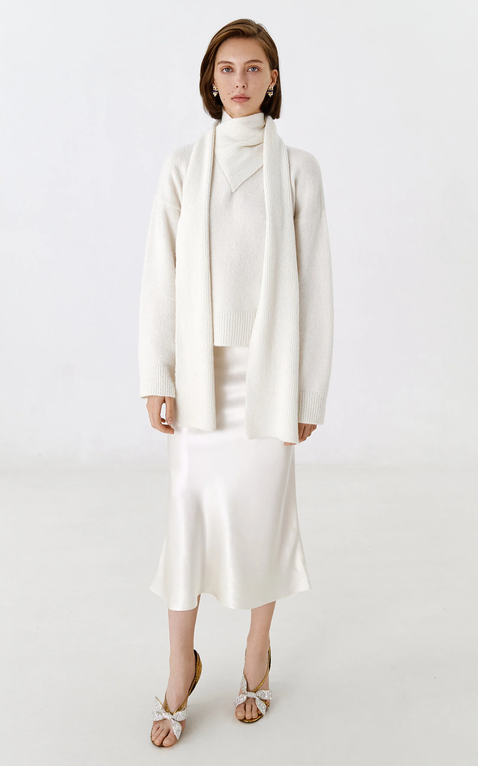 Caroline Satin Midi Skirt ivory