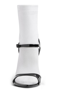 Renowned for their sleek, fluid lines and statement-making garnishes, Balenciaga’s meticulously crafted accessories always have the right amount of edge. Each piece either pays homage to legendary house signatures or displays fresh, out-of-the-box innovation—oftentimes, simultaneously. The 'Avenue' pumps are striking in every way. From their 110mm arch and slender stiletto heel to its attached sock feature for a 90s layered look. PRODUCT DETAILS - Heel measures approximately 110mm / 5" - Slip on - Composition: patent leather, sock - Made in Italy