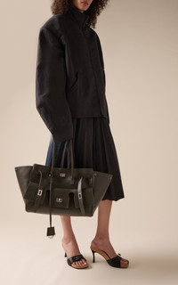 Experimental and minimalistic by design, Balenciaga is also renowned for its uncompromising standard and avant-garde creativity. With Creative Director Georgian designer Demna Gvasalia at its helm, the brand continues to live and breathe Balenciaga’s inherent elegance, balanced with the designer’s edgy, urban aesthetic. The 'Rodeo' bag's big sister, the 'Bel Air' is a generously-sized, carry-all design crafted from smooth calfskin leather and detailed with exterior pockets and gold-tone hardware. PRODUCT DETAILS - Twist lock fastening - Composition: calfskin leather - Made in Italy SIZE & FIT - This item measures approximately 18 x 50 x 26.5cm