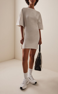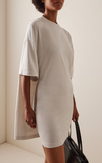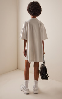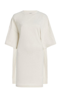 Experimental and minimalistic by design, Balenciaga is also renowned for its uncompromising standard and avant-garde creativity. The brand continues to live and breathe Balenciaga’s inherent elegance, balanced with the designer’s edgy, urban aesthetic. This cotton T-shirt dress features a fitted body with a draped back panel and dropped shoulders to give it an oversized feel. PRODUCT DETAILS - Pre-Fall '25 - Slip on - Composition: 100% cotton - Designer color: Dirty White - Machine wash - Made in Italy